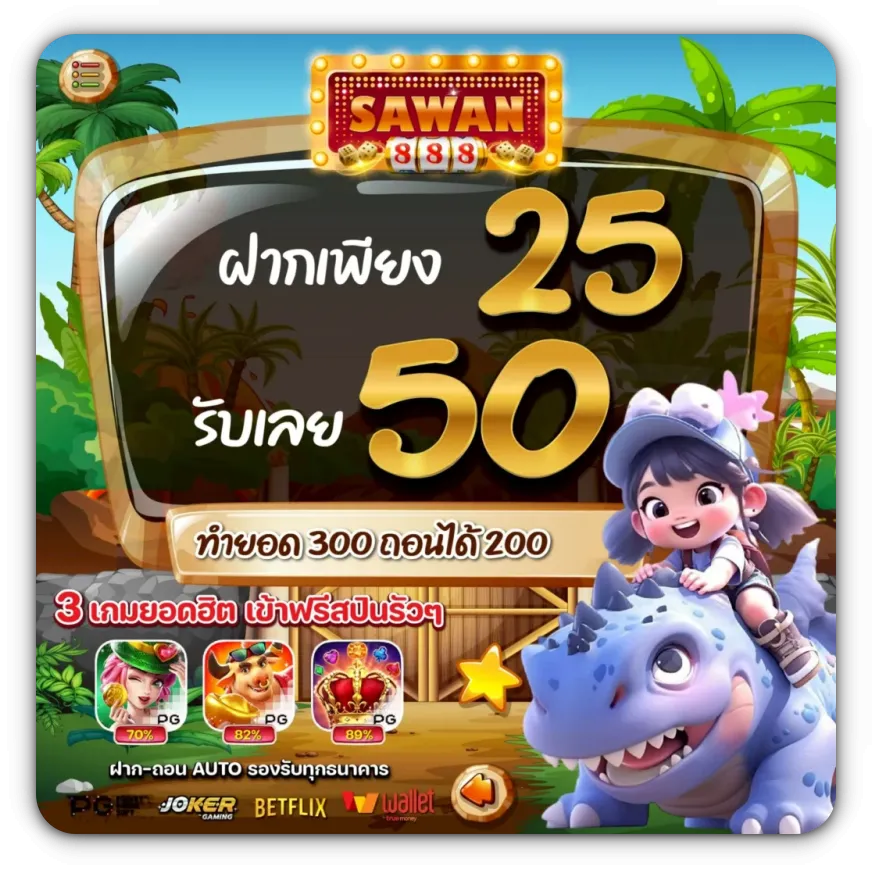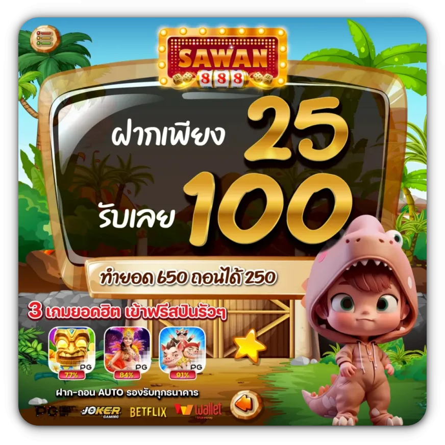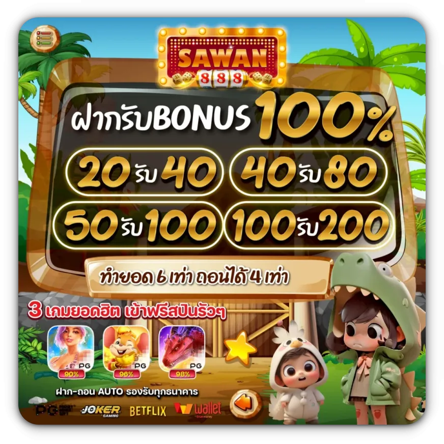 SAWAN888 เว็บสล็อตเว็บตรงที่โดดเด่นที่สุดในปี 2025 มอบประสบการณ์การเล่นที่ปลอดภัยและคุ้มค่าสำหรับผู้เล่นทุกระดับ ด้วยคอนเซ็ปท์ “เข้าเล่นง่าย ได้กำไรง่าย” ระบบของเรารองรับการทำธุรกรรมทั้งธนาคารและสล็อตวอเลท ทำให้การฝาก–ถอนรวดเร็วทันใจ พร้อมโปรโมชั่นแรงอย่าง ฝาก 20 รับ 100 ที่ออกแบบมาเพื่อผู้เล่นทุนน้อยโดยเฉพาะโบนัส ทํา 200 ถอนได้ 100 เป็นอีกหนึ่งจุดเด่นที่ช่วยเพิ่มโอกาสชนะโดยไม่ต้องใช้เงินทุนมาก เมื่อรวมกับเกมคุณภาพจากค่ายชั้นนำที่มีให้เลือกหลากหลาย ผู้เล่นจะได้สัมผัสกับอัตราการจ่าย (RTP) ที่ยุติธรรมและระบบเกมที่มีมาตรฐาน เว็บตรงไม่ผ่านเอเย่นต์ของเรายังลดความเสี่ยงเรื่องการถูกล็อกยูสหรือปรับผลเกม ซึ่งสร้างความมั่นใจให้ผู้เล่นได้เต็มที่อินเทอร์เฟซของSAWAN888 ถูกออกแบบให้ง่ายต่อการใช้งาน ทั้งบนคอมพิวเตอร์และมือถือ สมาชิกใหม่สามารถสมัครและเริ่มฝากเงินเพื่อรับโปรโมชั่นได้ทันที ทีมสนับสนุนพร้อมให้บริการตลอด 24 ชั่วโมง ตอบข้อสงสัยและแก้ไขปัญหาได้อย่างรวดเร็ว ช่วยให้การเล่นต่อเนื่องไม่มีสะดุด ด้านความปลอดภัย เราให้ความสำคัญกับการปกป้องข้อมูลส่วนบุคคลและการทำธุรกรรมทางการเงินด้วยเทคโนโลยีล่าสุด ระบบตรวจสอบและการเข้ารหัสมาตรฐานสูงช่วยป้องกันการเข้าถึงที่ไม่ได้รับอนุญาต ทำให้ผู้เล่นสามารถมุ่งเน้นที่การเล่นและวางแผนการลงทุนได้อย่างสบายใจ